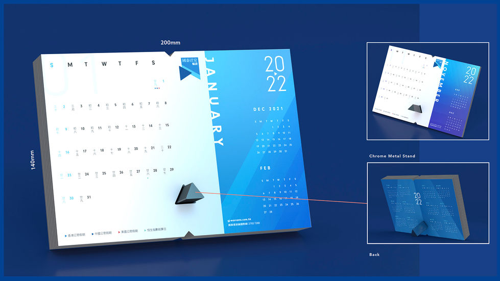 We were commissioned by Guotai Junan International (GTJA) to design the 2022 calendar for GJ Warrants, with the goal of embodying the brand's professional efficiency and innovative spirit. The design features a simple yet highly effective structure, using a triangular stand that not only provides the perfect display angle but also subtly echoes the GJ Warrants logo mark. Furthermore, subtle color gradients were incorporated to visually represent the brand's constant progress and forward momentum.
